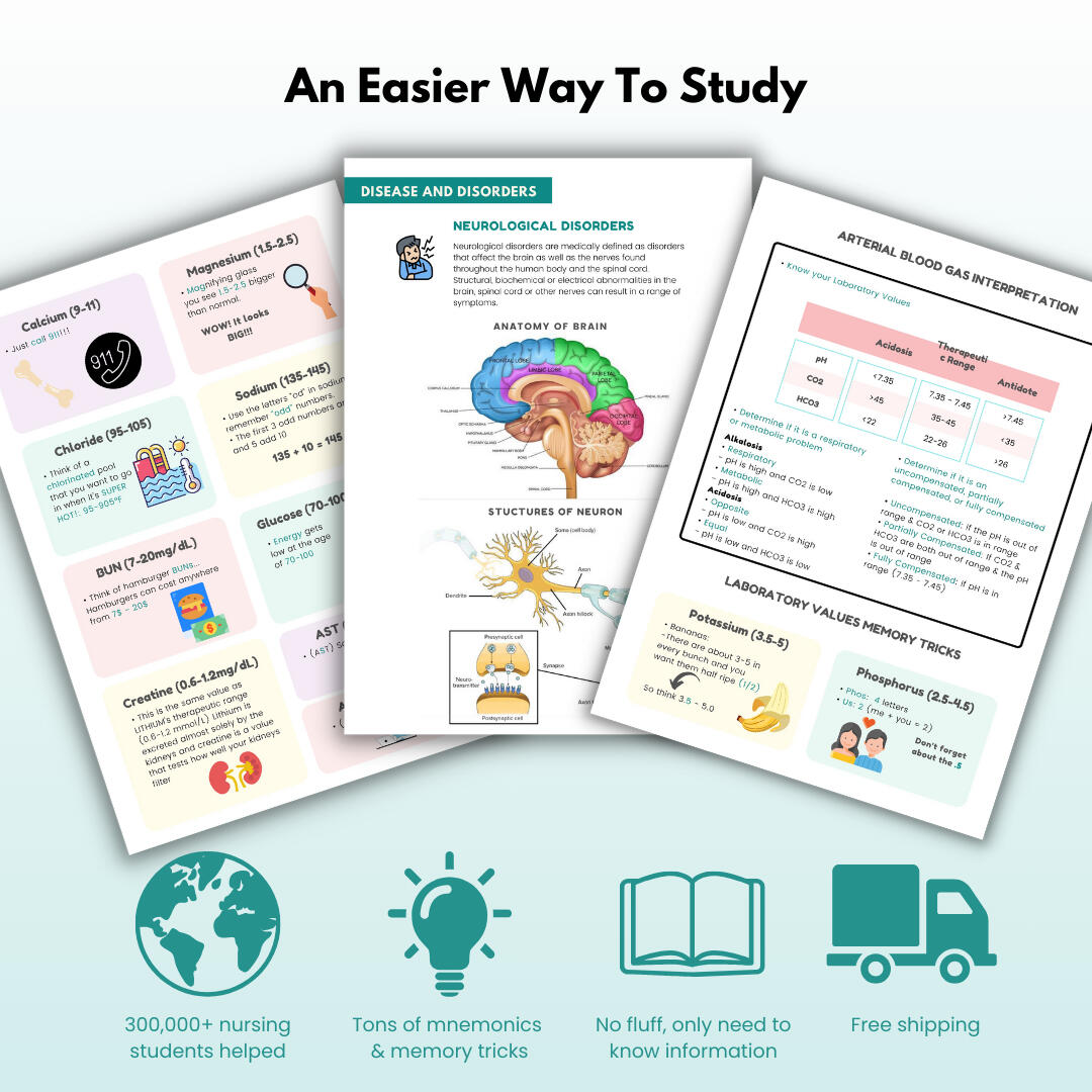 The All-in-One Nursing School Bundle is filled with tons of mnemonics, memory tricks and only contains need to know information.